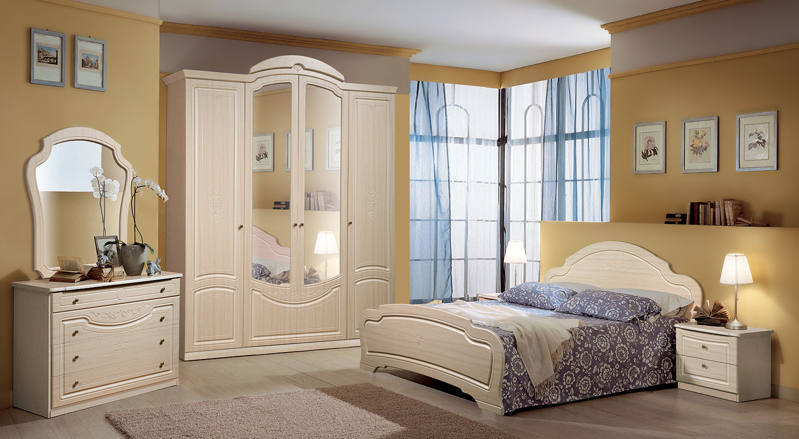 Модульная коллекция мебели в классическом стиле для спальни. Материал: МДФ покрытый плёнкой, ЛДСП.