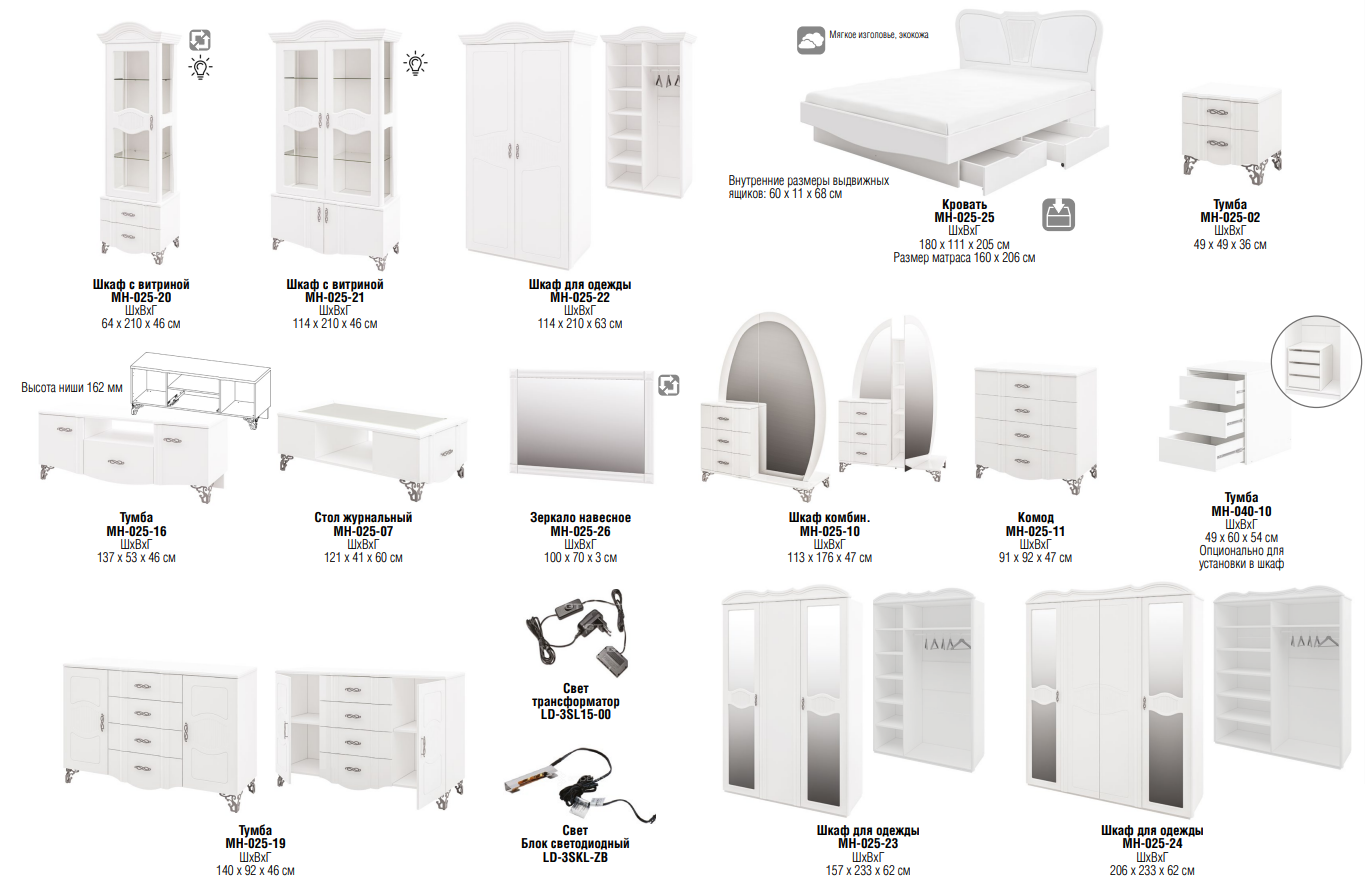 Серия мебели классического стиля в лаконичном цвете персидского жемчуга. Материал: МДФ, ЛДСП.