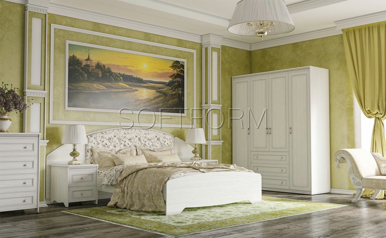 код 112601Классический набор мебели для спальной комнаты. Включает в себя: тумбу, кровать, 4 ств шкаф и комод.