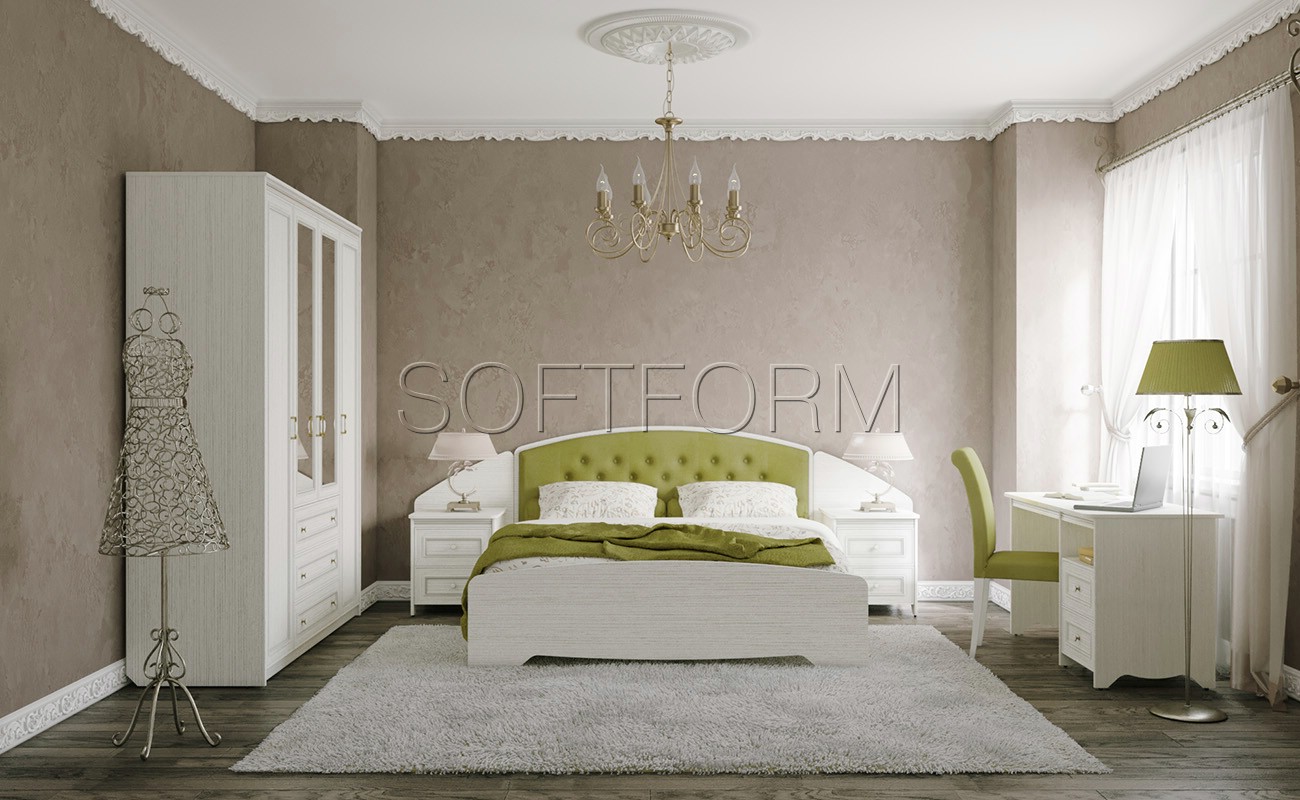 Классическая коллекция мебели для обустройства спальной комнаты. Материал: МДФ покрытый плёнкой, ЛДСП.