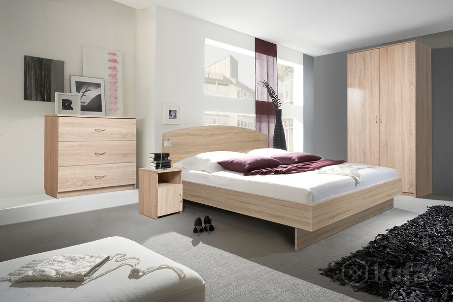 код 145289Полный комплект: шкаф, кровать двуспальная, комод, две прикроватные тумбы.