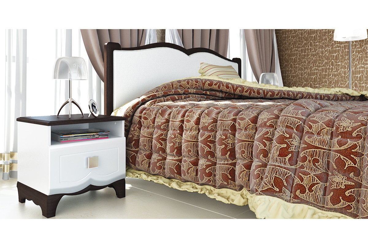 Набор мебели для спальни «Тиффани» выполнен в белом цвете с изящными темно-коричневыми акцентами. Спинка кровати выполнена из экокожи – износостойкого дышащего материала, имитирующего натуральную кожу. Экокожа приятная и мягкая на ощупь, имеет экологически чистый состав.