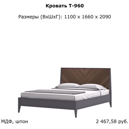 Спальное место: 1600х2000 мм. Материал: ЛДСП, МДФ.