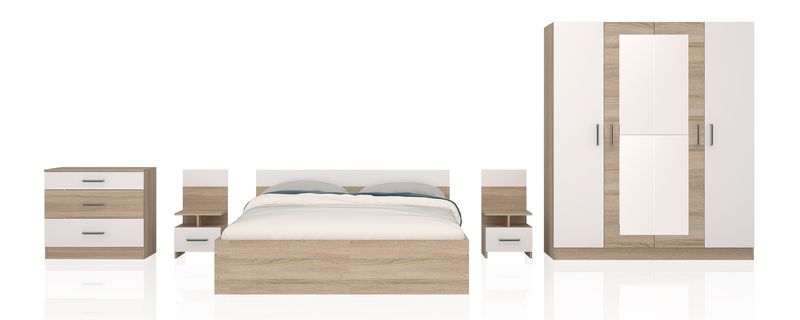 Спальня «Уют» с 4-ёх створчатым шкафом Сонома/Белый