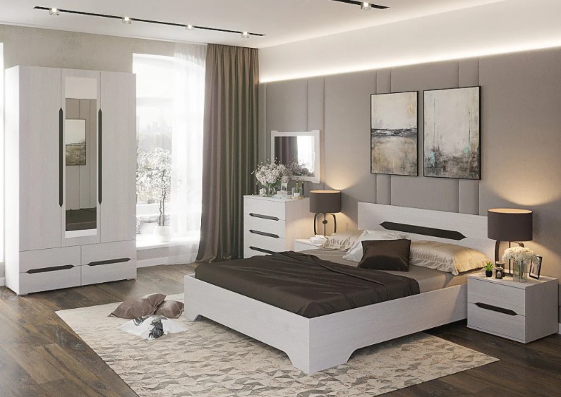 Готовый набор мебели для спальной комнаты. Материал: МДФ, ЛДСП.