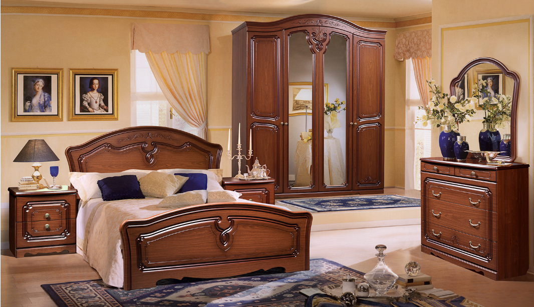 Набор из кровати 160х200, шкафа 4х дверного, комода 4 ящика, 2 тумбы прикроватные