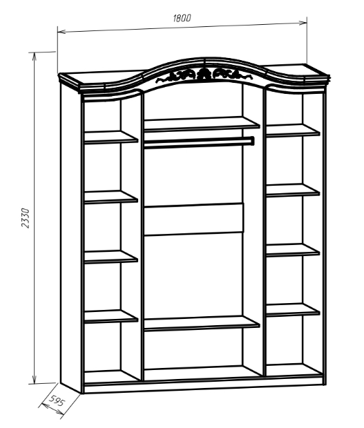 Шкаф для одежды 4-х створчатый: H2330 х B1796 х T595 мм.