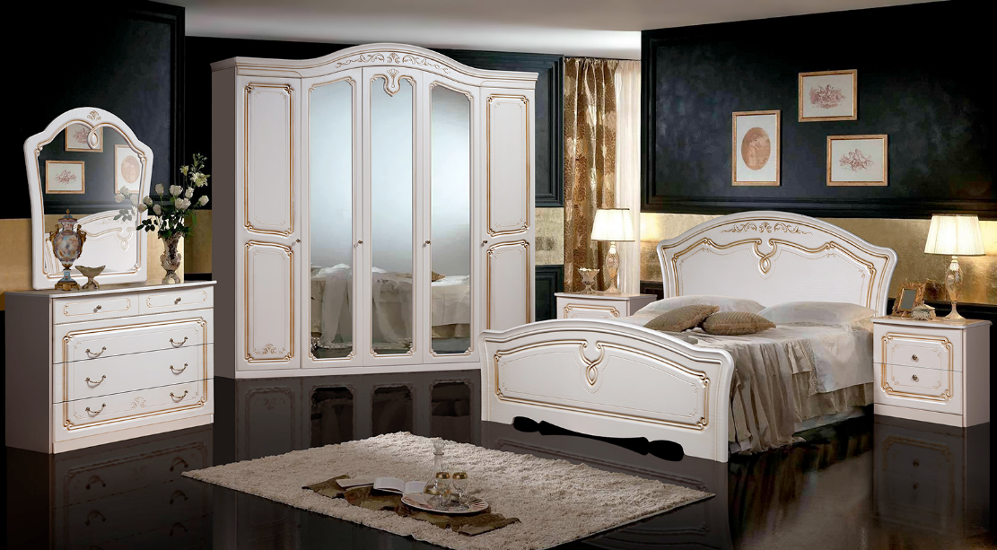Классическая коллекция мебели для обустройства спальной комнаты. Материал: МДФ покрытый плёнкой, ЛДСП.