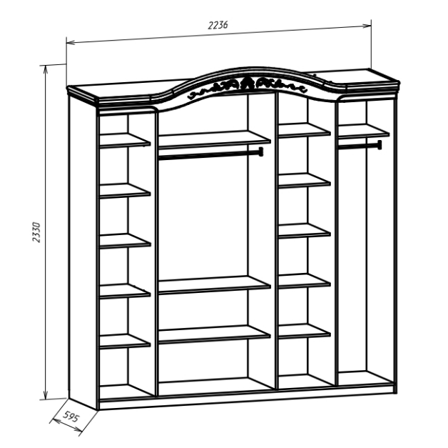 Шкаф для одежды 5-ти створчатый: H2330 х B2235 х T595 мм.