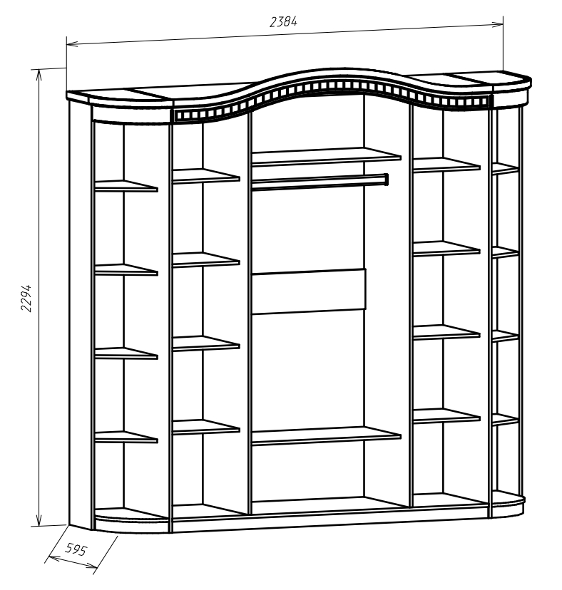 Шкаф: H2330 х B2384 х T595 мм.