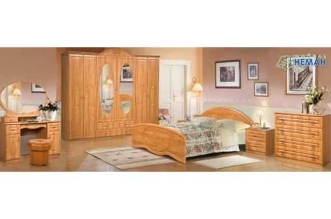 Состав комплекта: комод, шкаф, двуспальная кровать, тумба (2 шт).