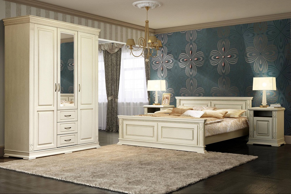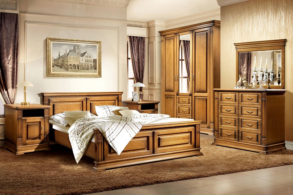 Набор мебели для спальни выполнен из натурального массива, отличающегося прочностью и долговечностью. Комплект состоит из просторной двуспальной кровати, вместительного шкафа с зеркальной вставкой и двух прикроватных тумб. Комплект будет отлично смотреться в спальне с совершенно любым интерьером.