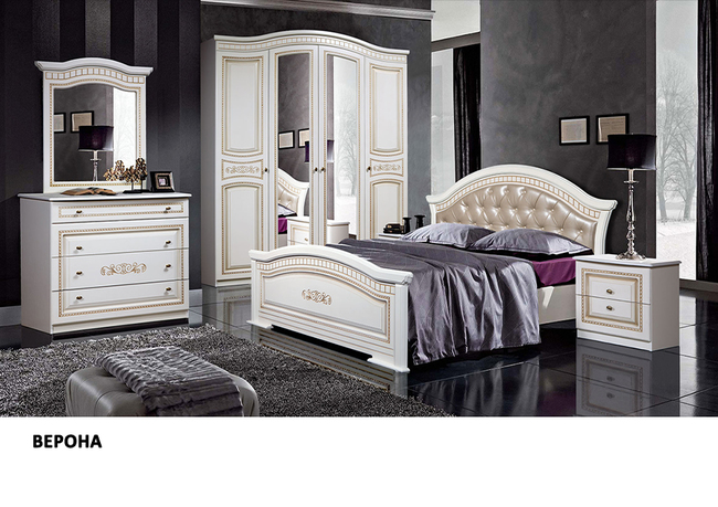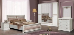 код 96177Спальный гарнитур в светлых оттенках с золотистой отделкой.