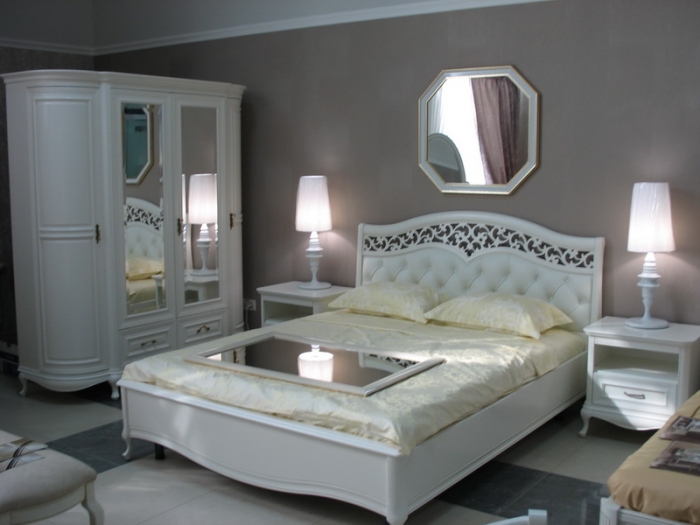 Спальня «София» - это великолепие белого глянца в сочетании с серебристыми деталями. Материал: МДФ покрытый плёнкой, ЛДСП.
