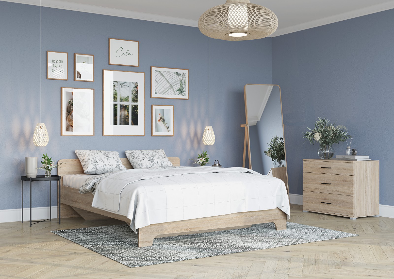 Уютная и лаконичная коллекция для спальни, располагающая к отдыху. Материал: МДФ, ЛДСП.
