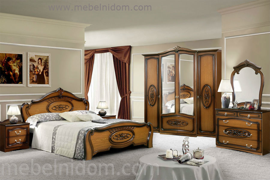 В серии представлены: шкафы для одежды с зеркалами, комоды, зеркала, кровати и прикроватные тумбы.