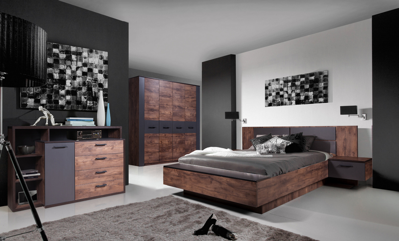 Мебель включает: 1 шкаф распашной, 1 комод, 1 кровать с основанием и подножьем (матрац не входит в комплект).