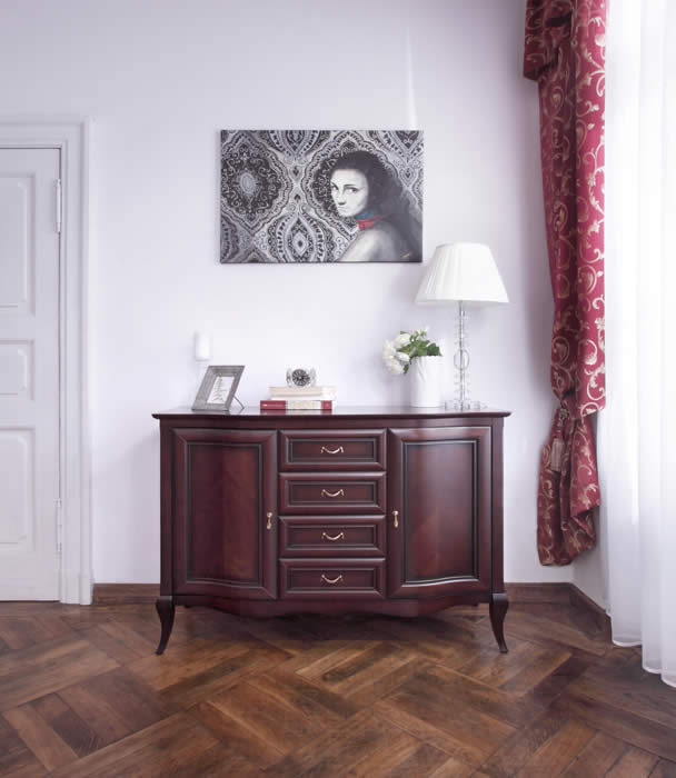 код 89329Отделка из натурального шпона с участием цельной древесины с искусно созданными ножками.