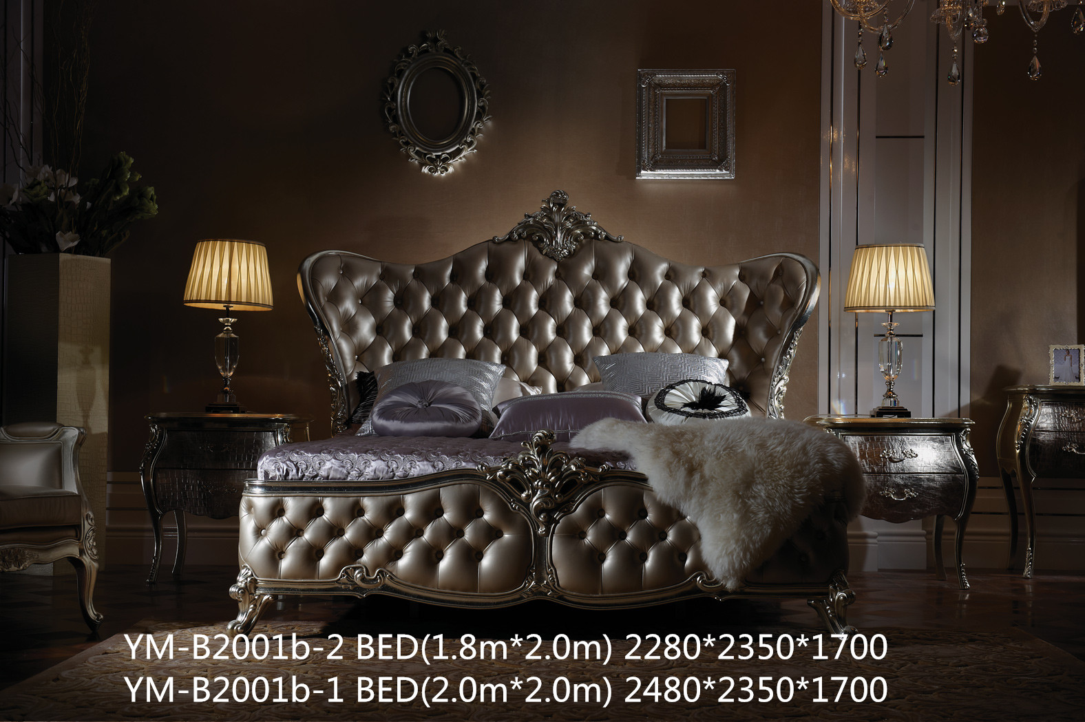 Кровать YM-B2001b-1-BED, общий размер: 2480×2350×1700мм