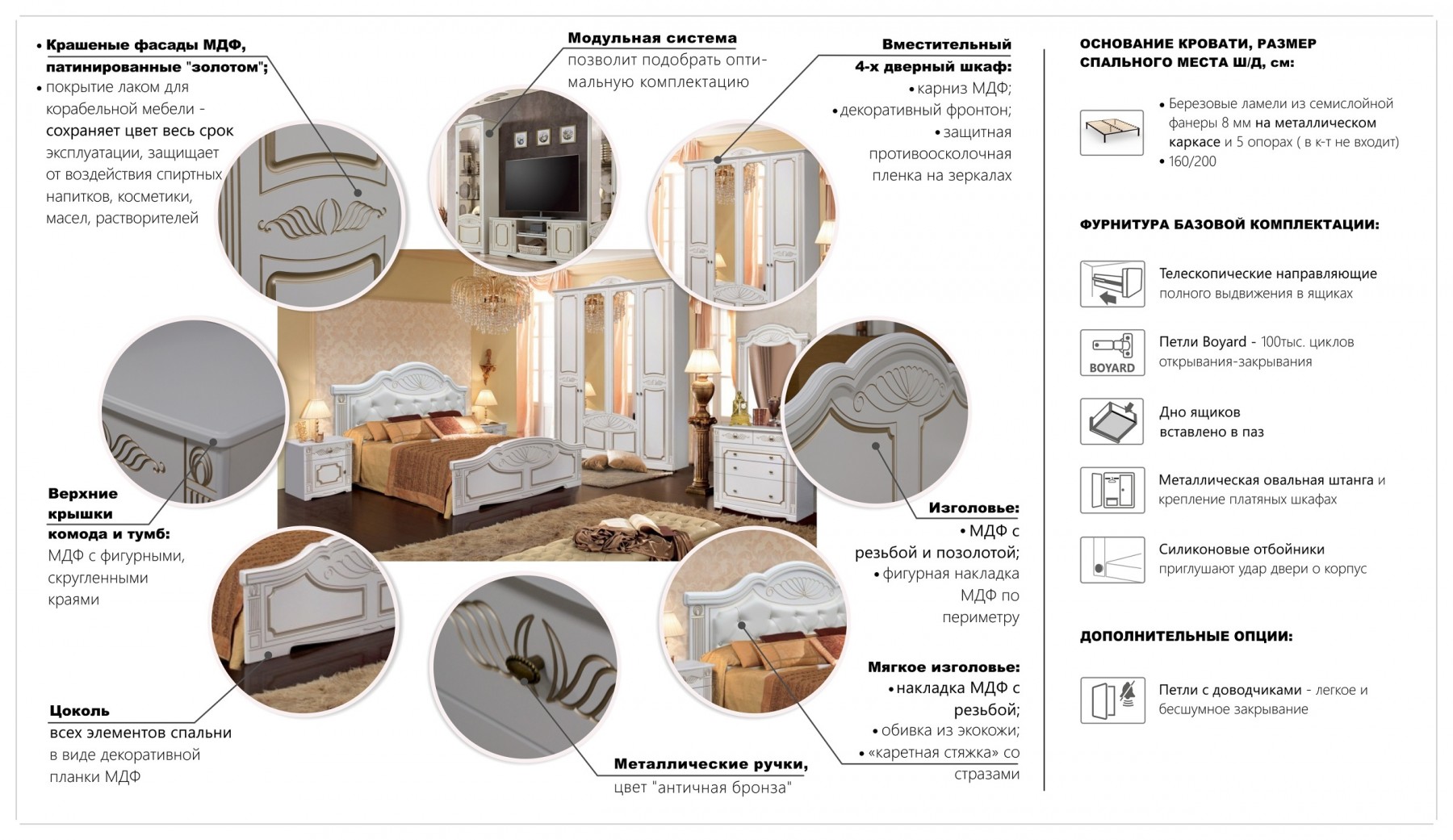 Спальный гарнитур «Амелия» Белый патина золото 2