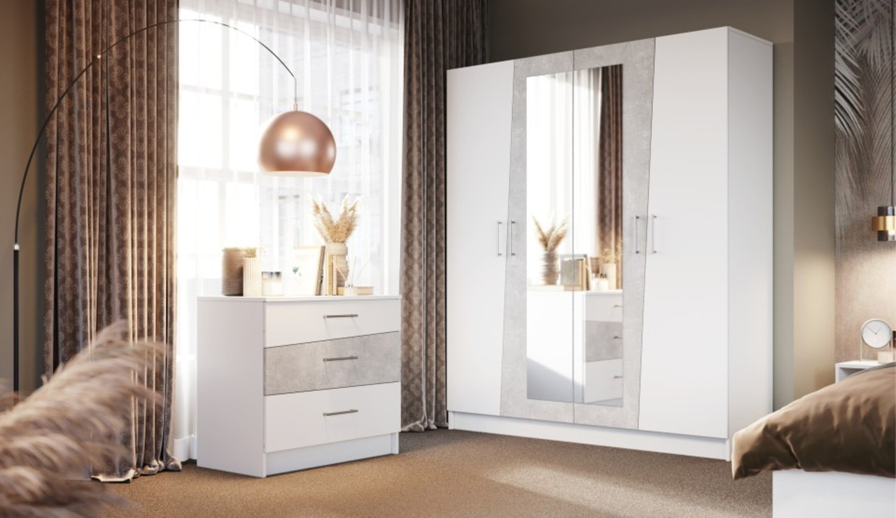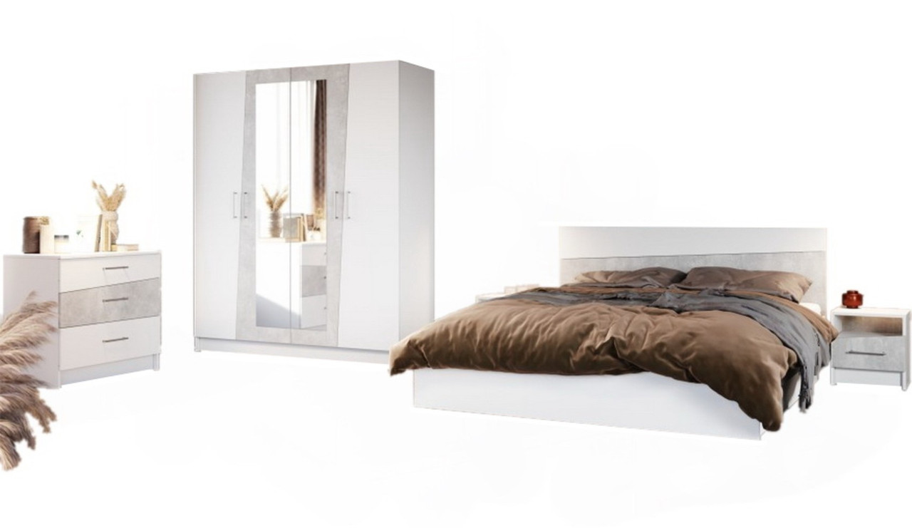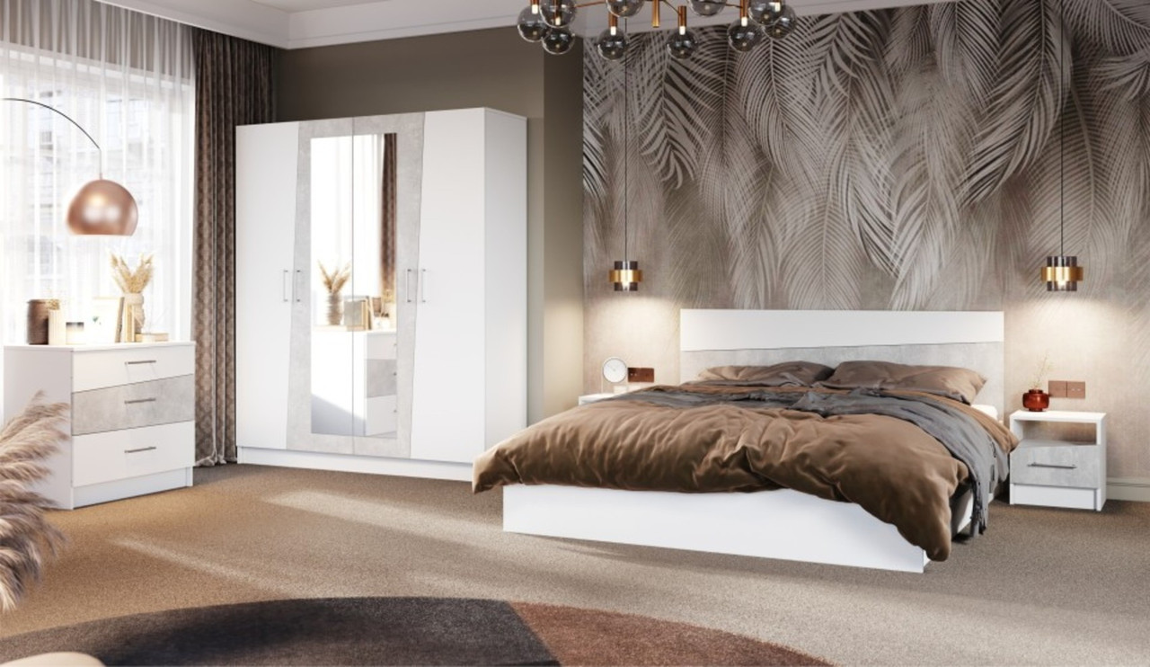 Спальный гарнитур «Антария» белый/Ателье светлый с 4-х дв. шкафом Imperial