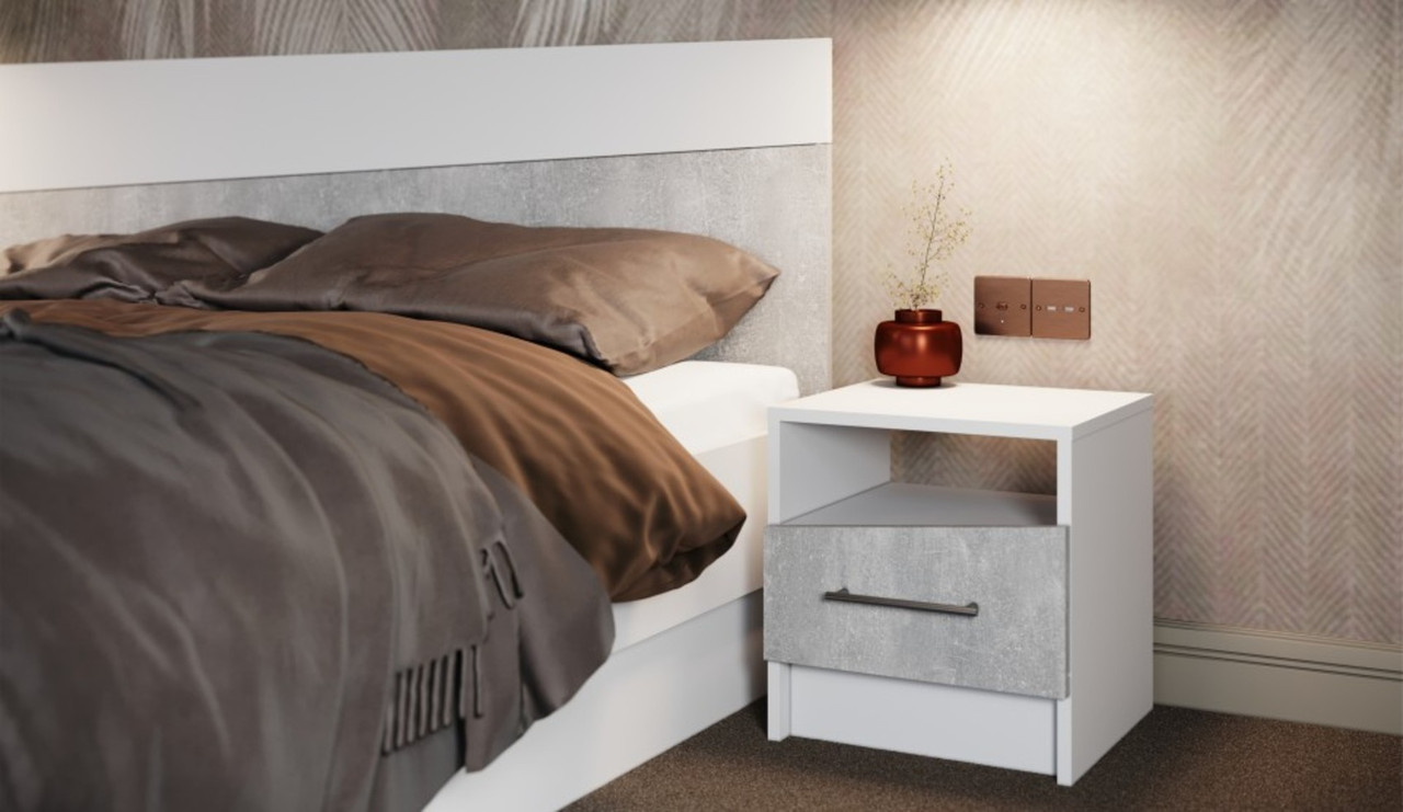 Уютная и лаконичная коллекция для спальни, располагающая к отдыху. Материал: МДФ, ЛДСП.