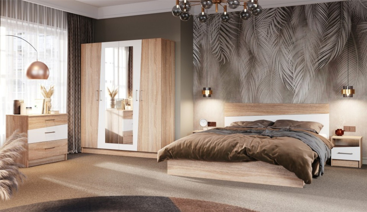 Спальный гарнитур «Антария» Дуб сонома/белый с 4-х дв. шкафом Imperial