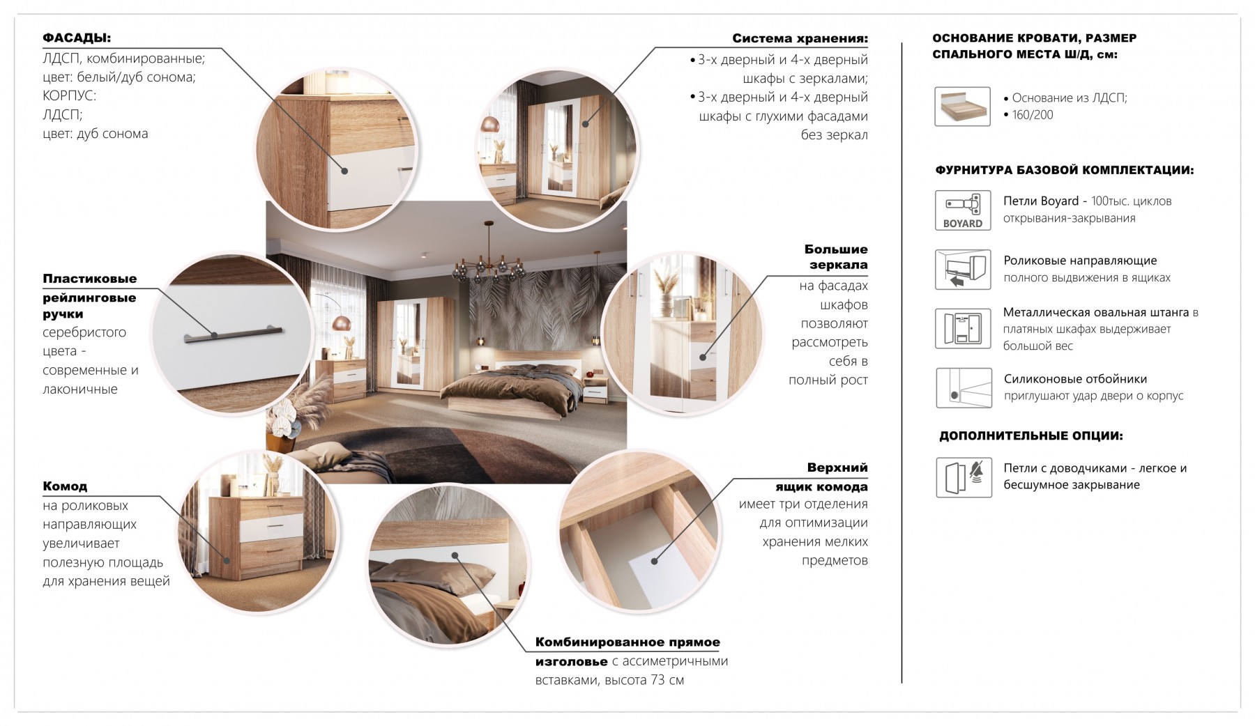 Коллекция модульной мебели для спальной комнаты. Материал: ЛДСП, МДФ.
