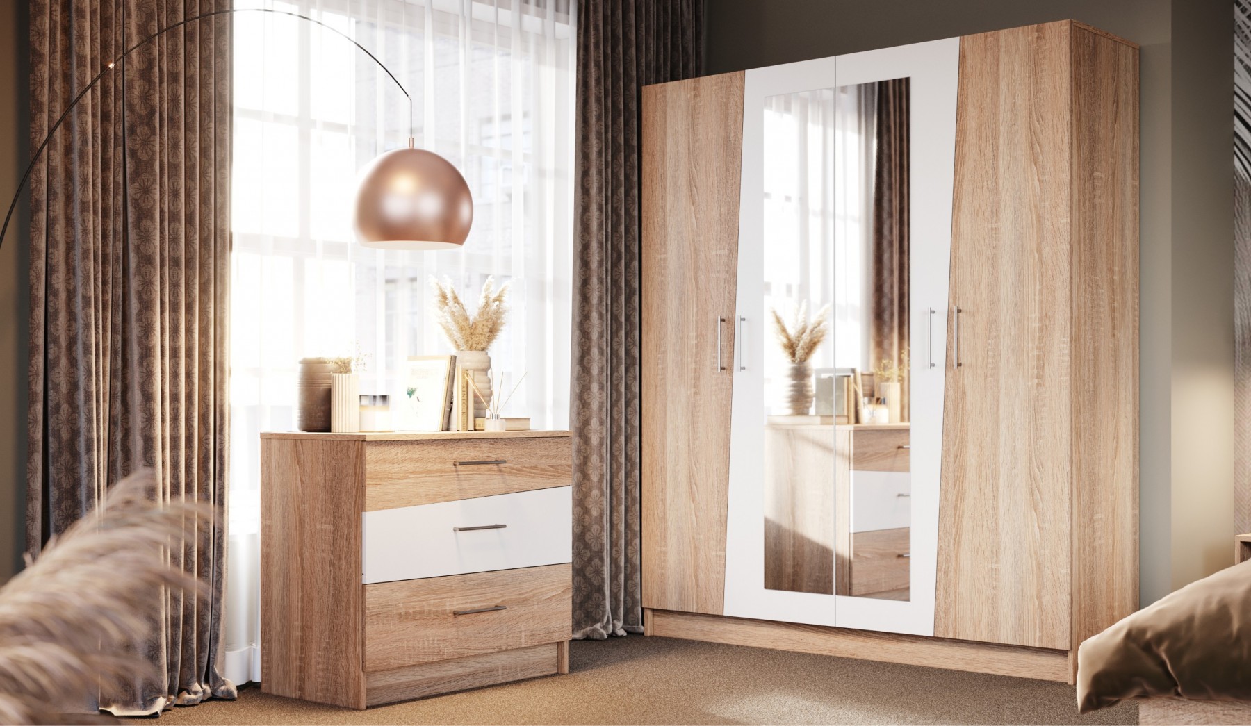 Спальня «Алена» венге/дуб молочный с 4-х дв. шкафом Imperial