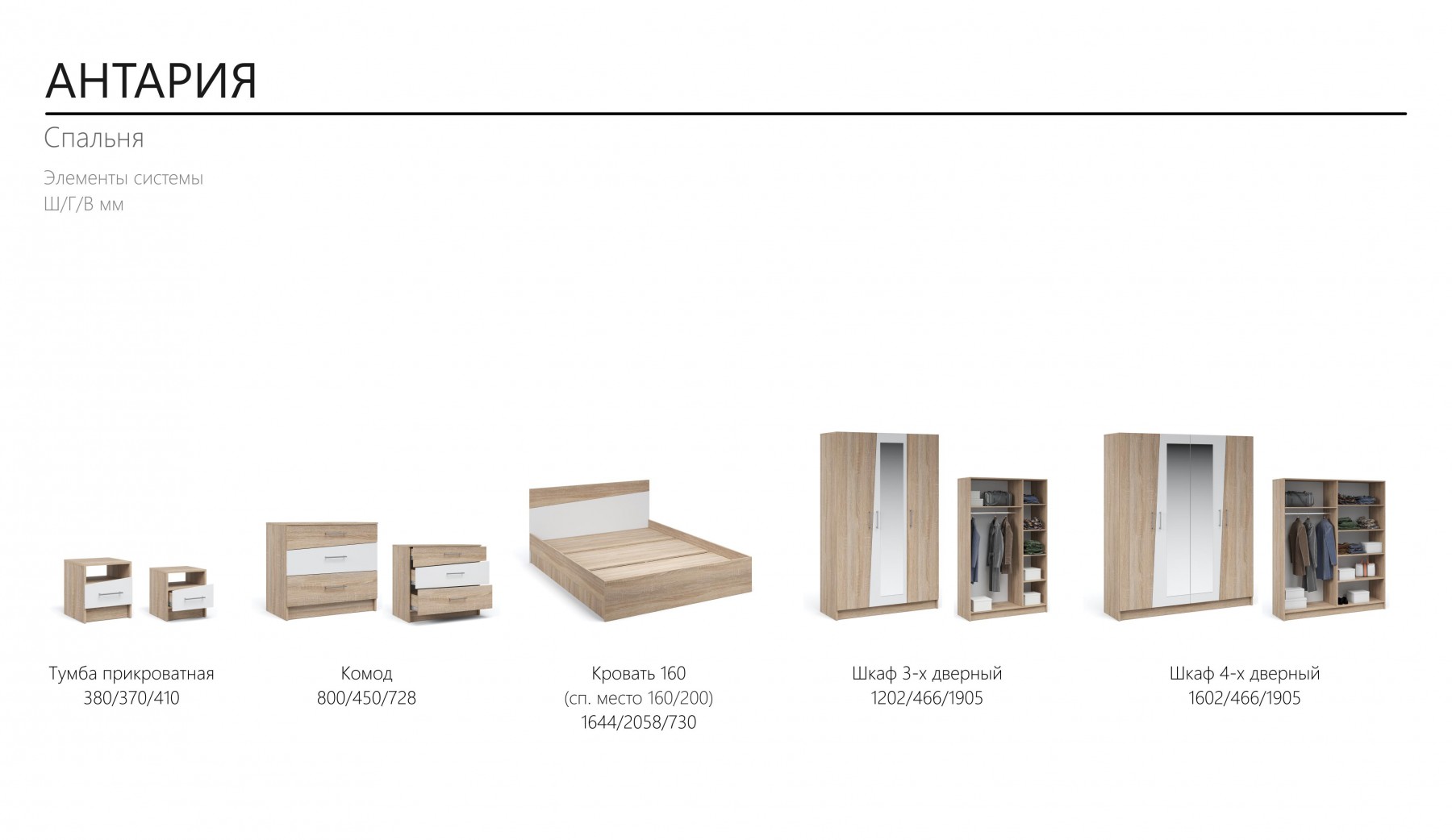Спальный гарнитур «Антария» Сонома/белый