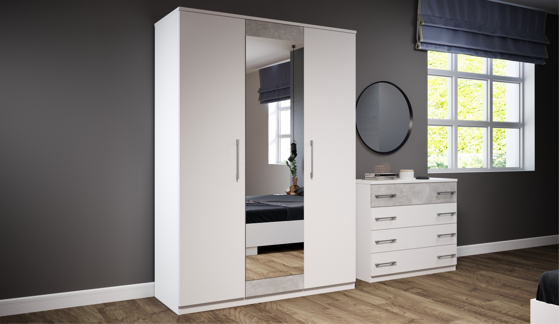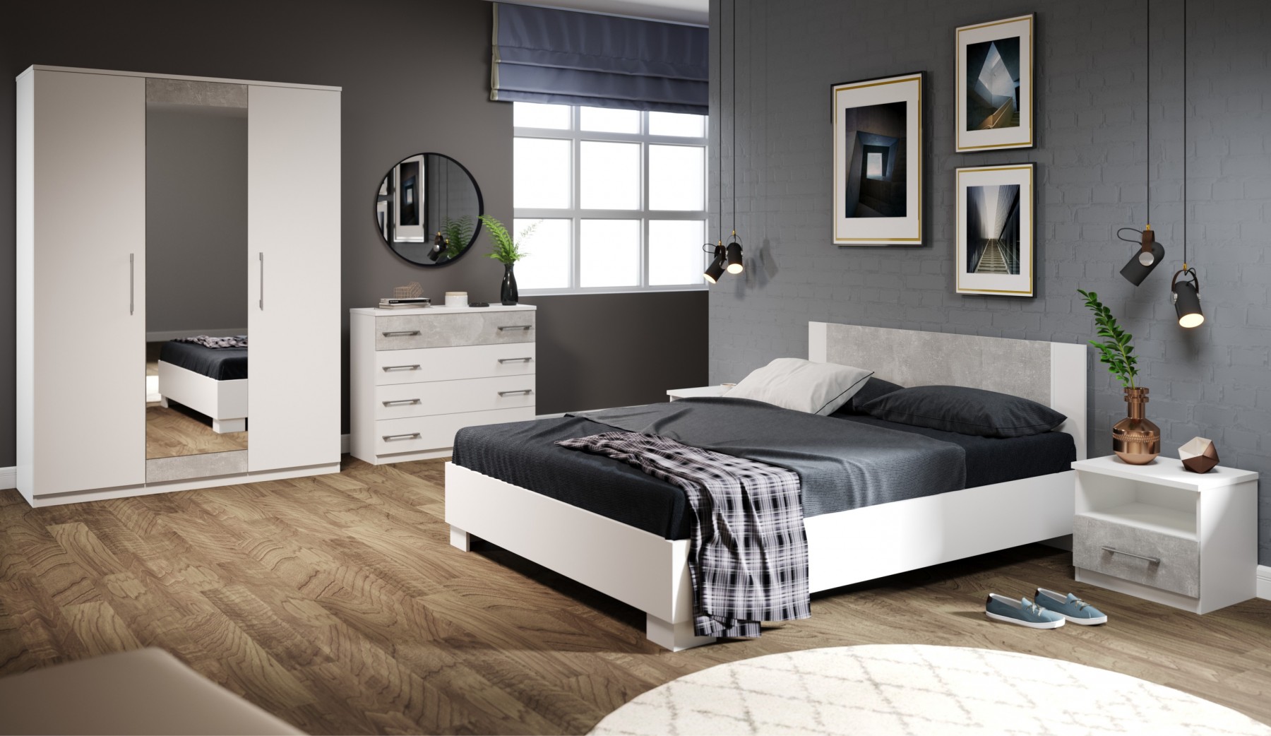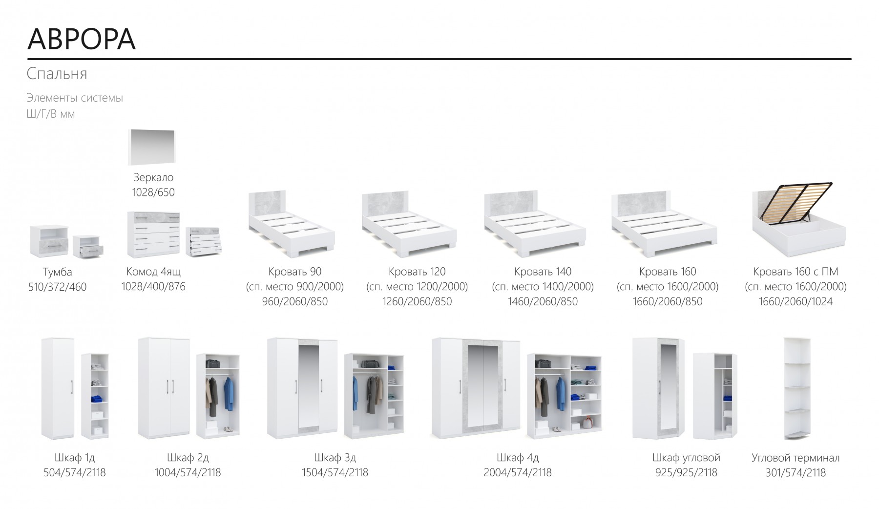 Спальный гарнитур «Аврора» Белый/ателье светлый