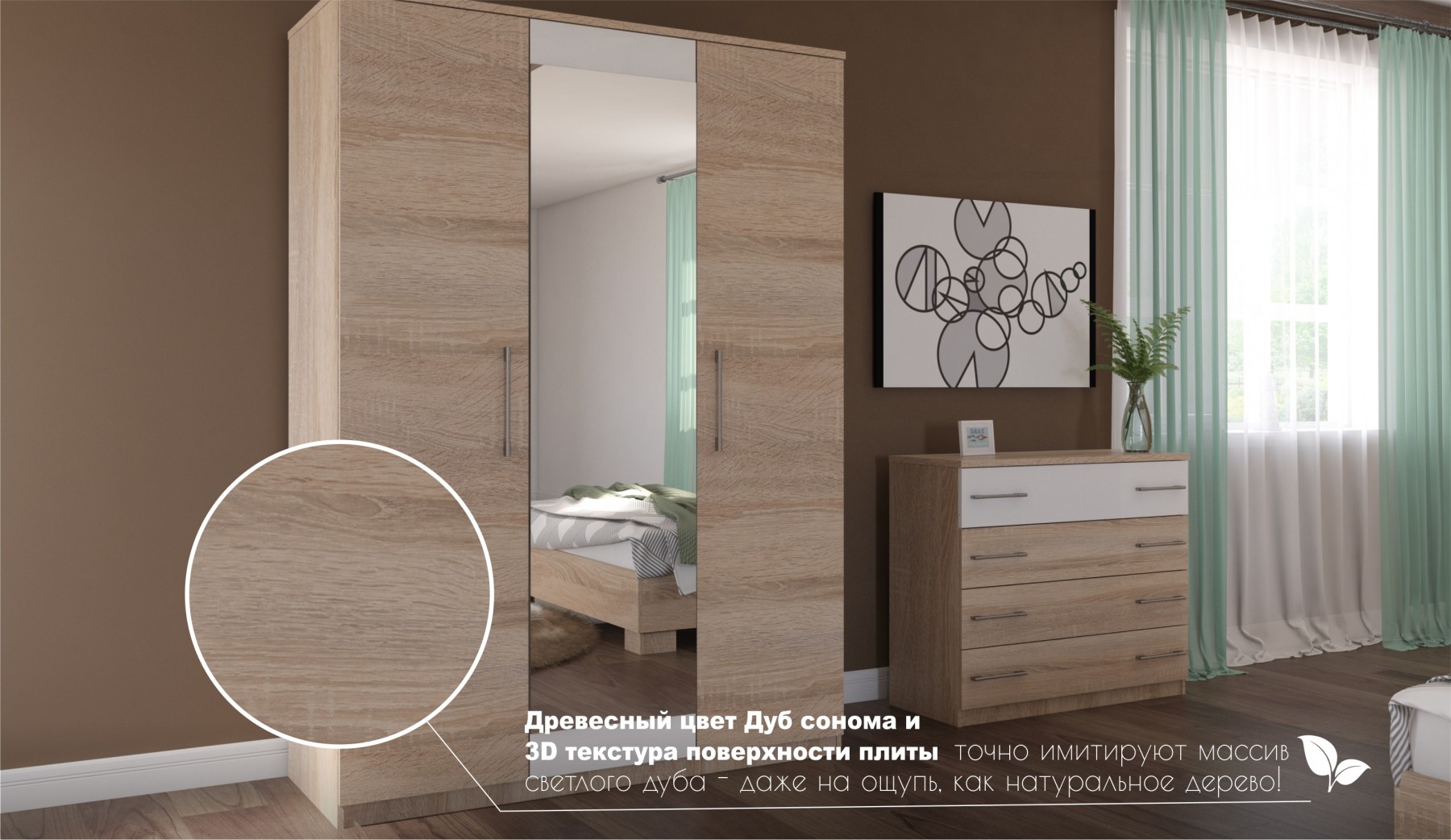 Спальня «Алена» Дуб сонома/белый с 3-х дв. шкафом Imperial
