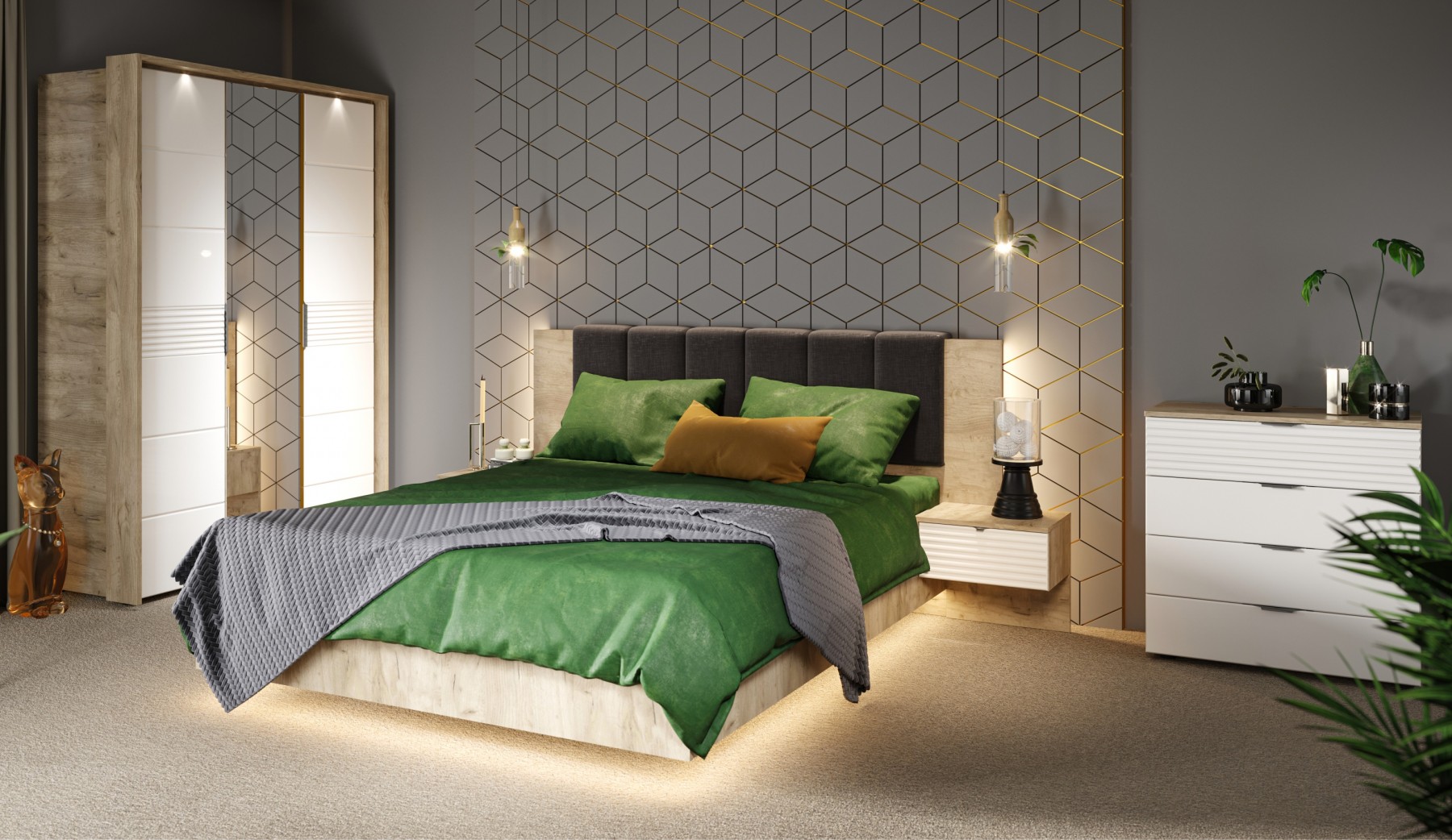 Модульная коллекция в скандинавском стиле для спальни. Материал: ЛДСП, экокожа.