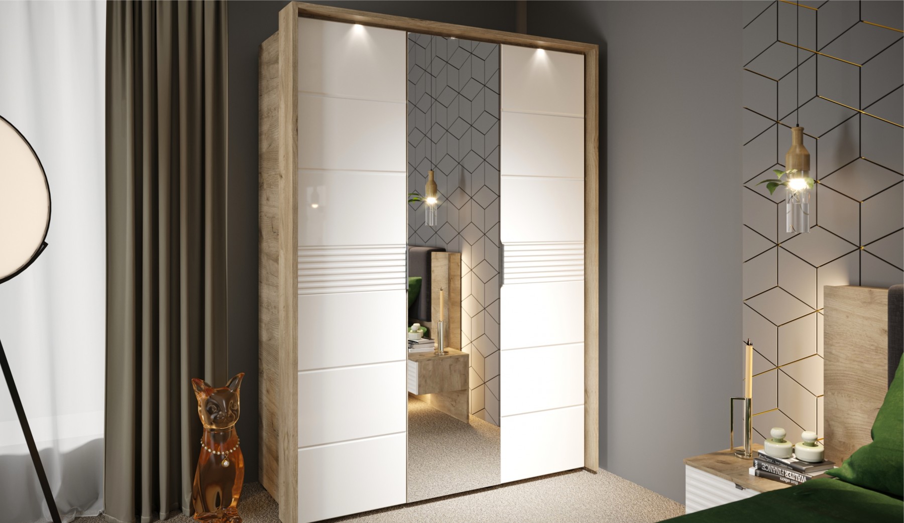 Широкий шкаф с зеркалами. Рамочные фасады.