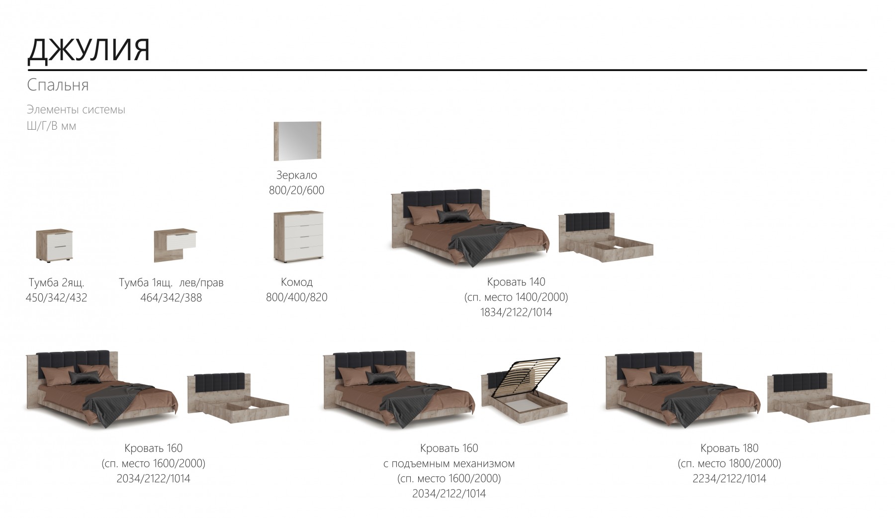 Спальный гарнитур «Джулия» Крафт серый/белый глянец 4