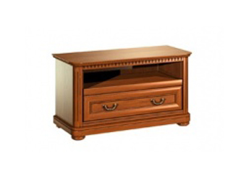 Набор мебели оснащен тумбой TV, на которую размещается телевизор. Также присутствует прикроватная тумба с откидными створками.