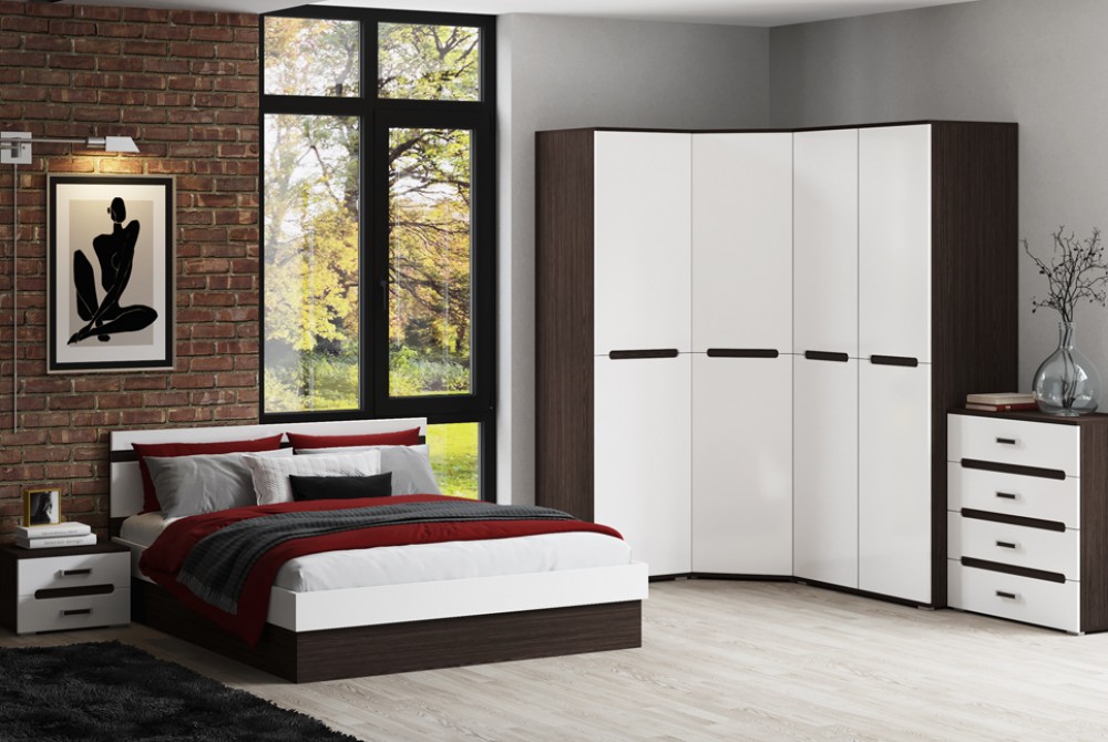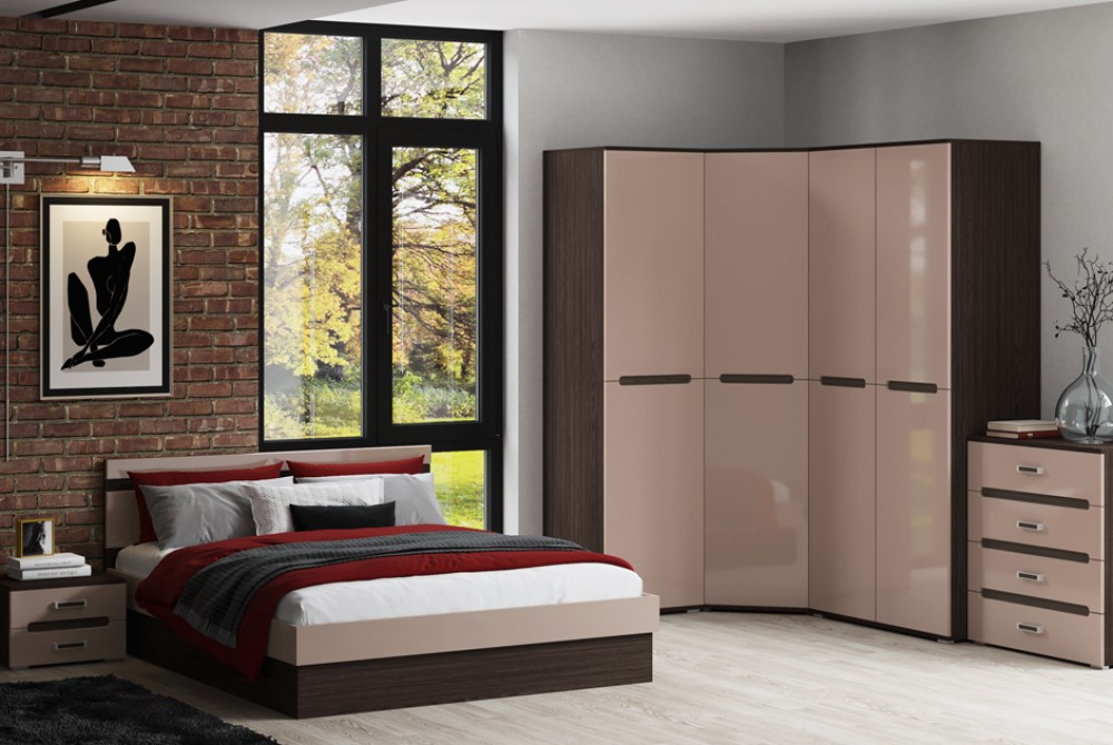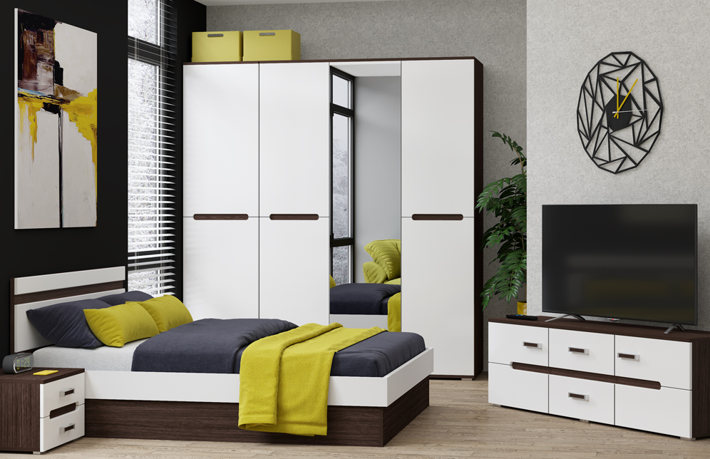 Эстетичная модульная коллекция мебели для спальной комнаты. Материал: МДФ покрытый плёнкой, ЛДСП.