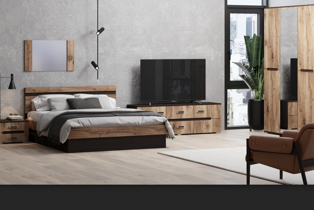 Комплект мебели для спальни линейки Онтарио, изготовленный из ЛДСП.