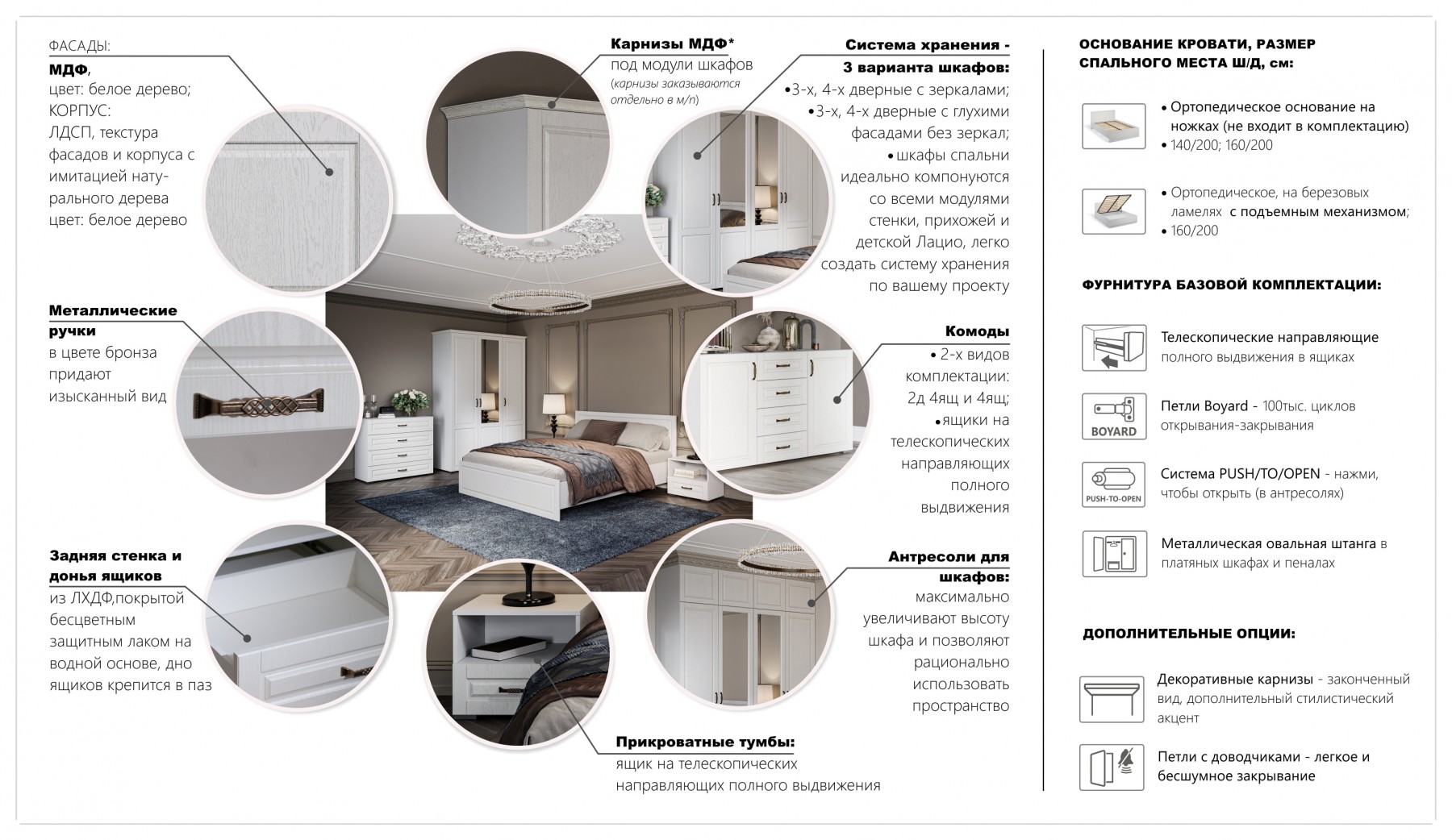Спальный гарнитур «Лацио» Белое дерево (ручка бронза) 4