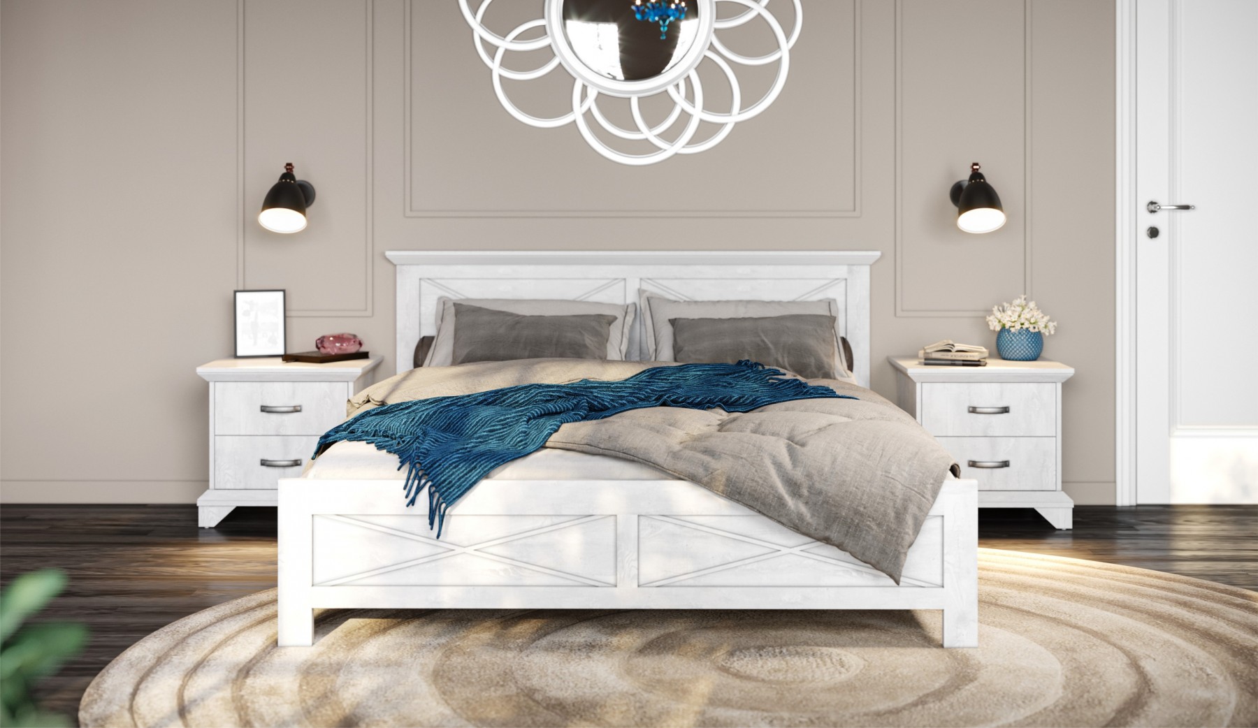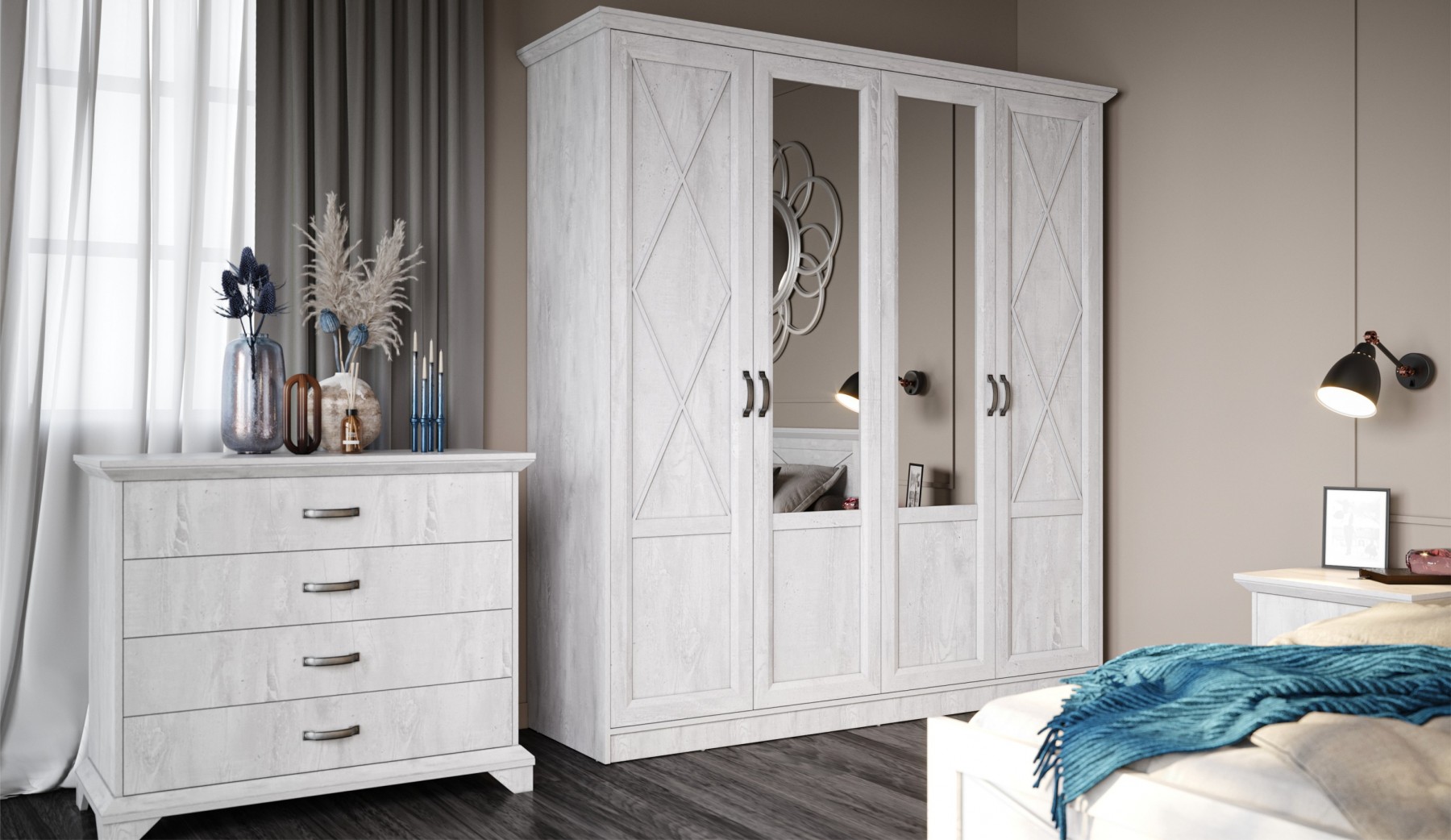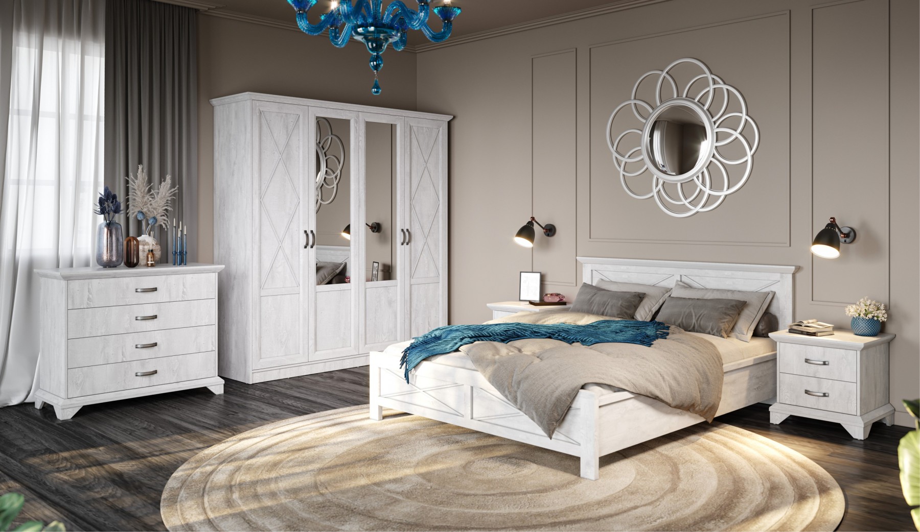 Модульная спальня «Аврора» белый-ателье светлый, вариант 1