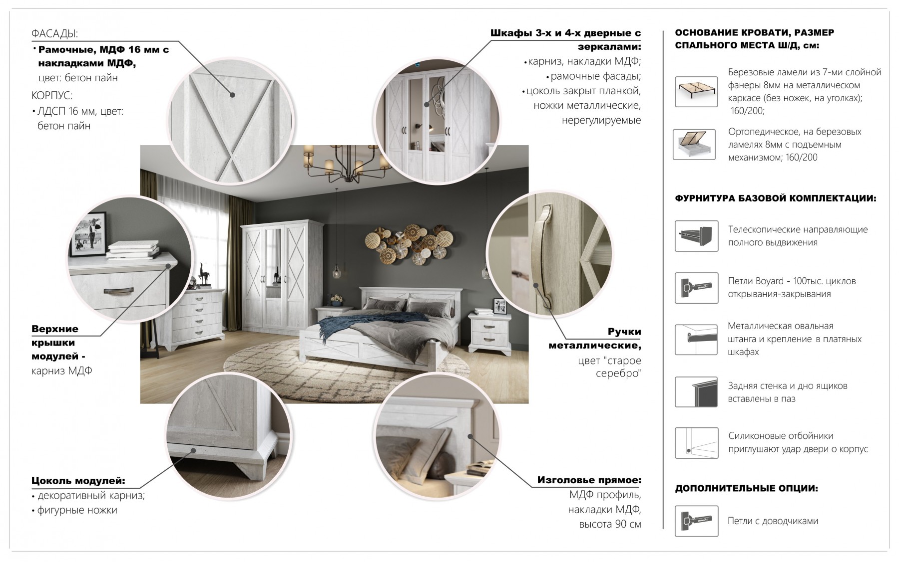 Спальный гарнитур «Лорена» Бетон пайн белый 2