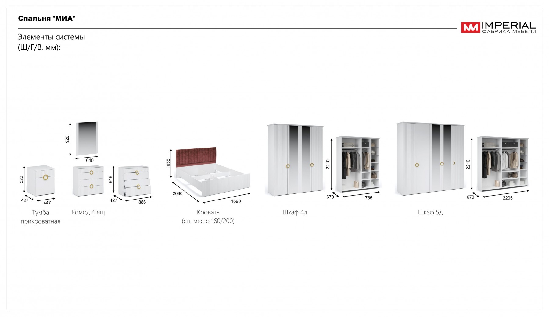 Модульная спальня «Йорк» белый жемчуг-белый глянец, вариант 1
