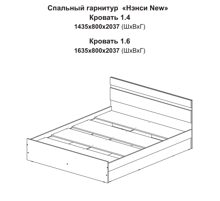 - Кровать Нэнси New 1,6 м - 1635 х 800 х 2037 мм