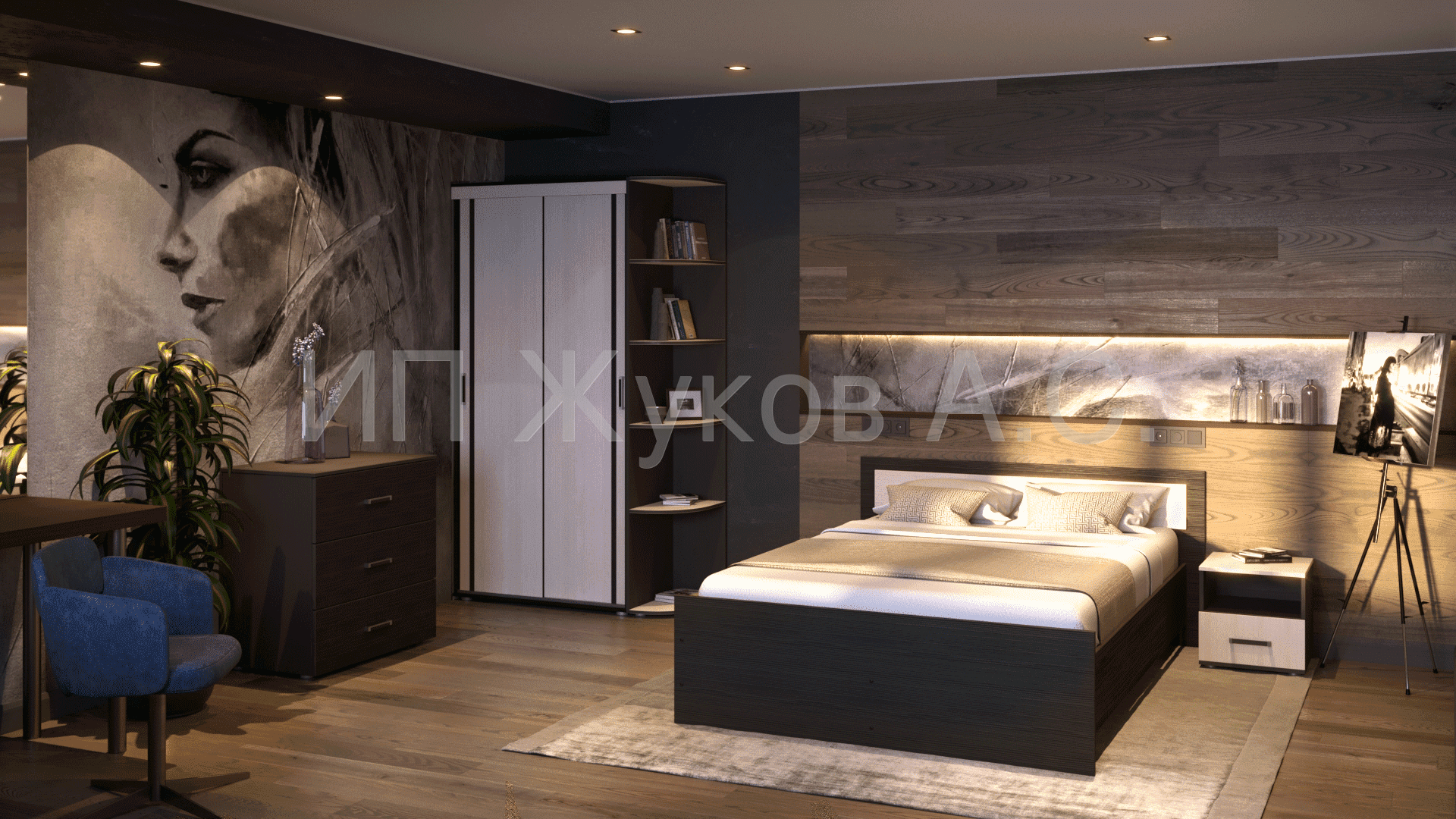 Современная модульная мебель для спальной комнаты. Материал: ЛДСП.
