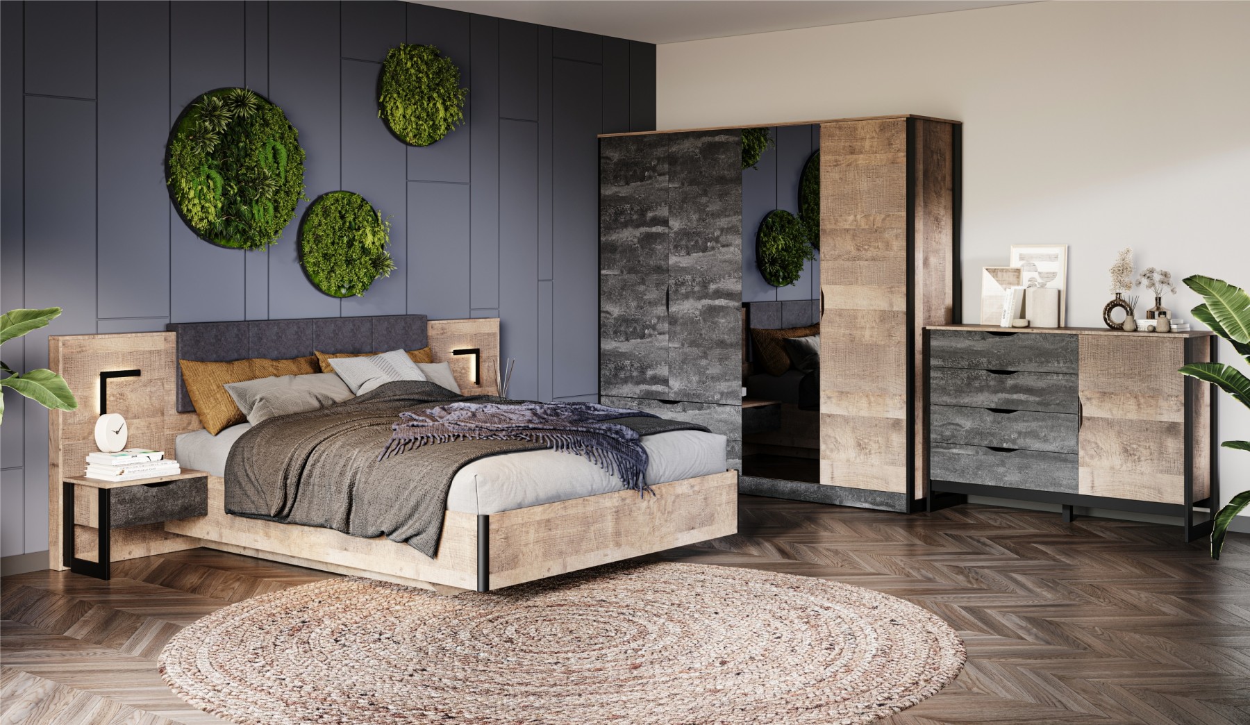 Спальня «Ривьера» Дуб Юкон/Бетон тёмный