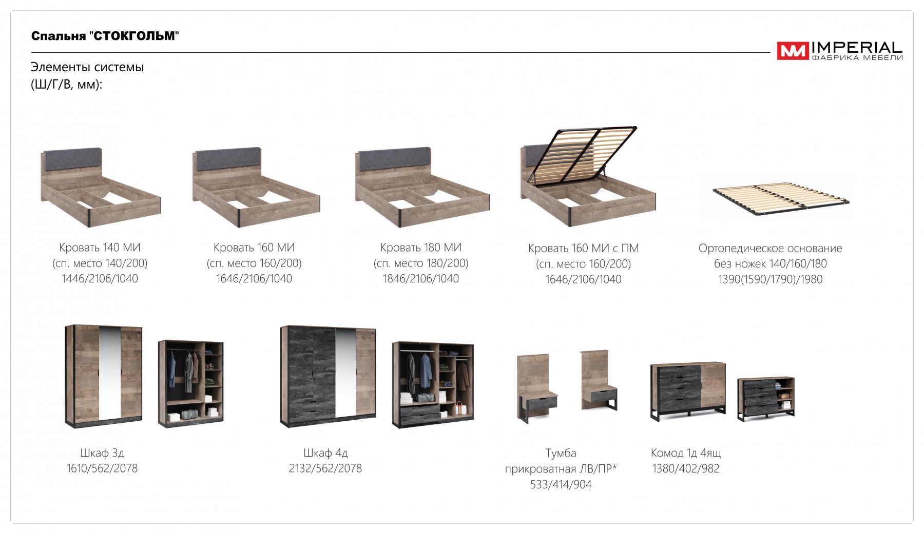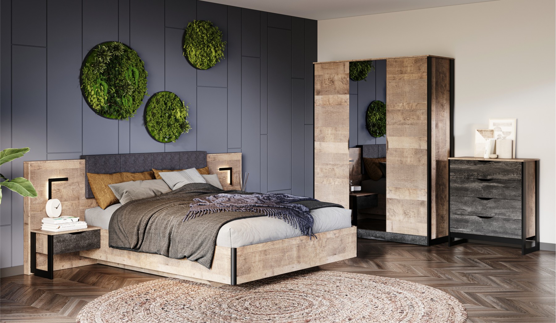 Спальный гарнитур «Стокгольм» Дуб гранж песочный/железный камень 2