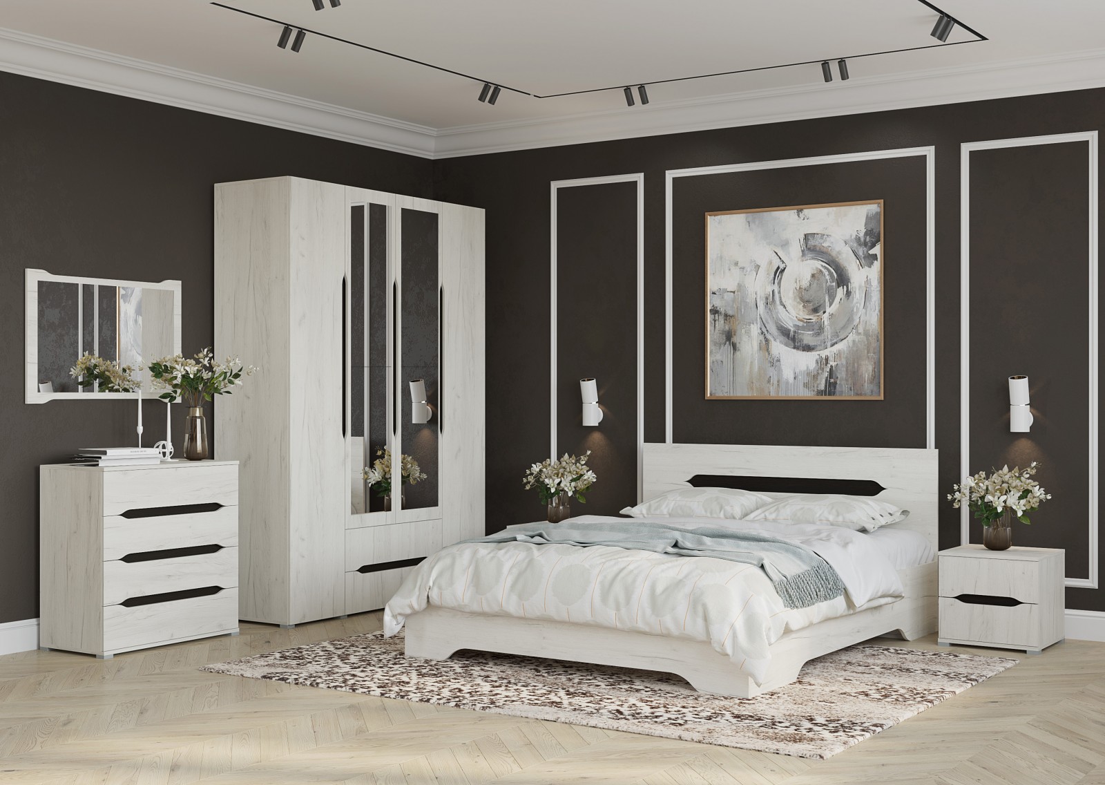 Коллекция модульной мебели для спальной комнаты. Материал: ЛДСП.