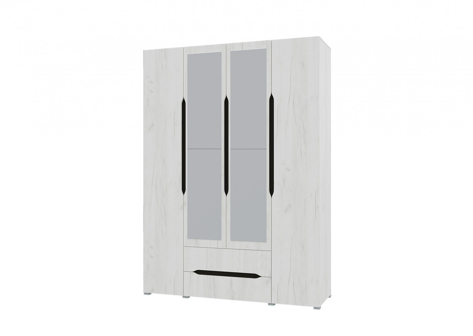 Размер шкафа 4-ств. 2 ящика с двумя зеркалами (Ш*В*Г): 1600х2200х520 мм (размер зеркала - 320х1605х4 мм)