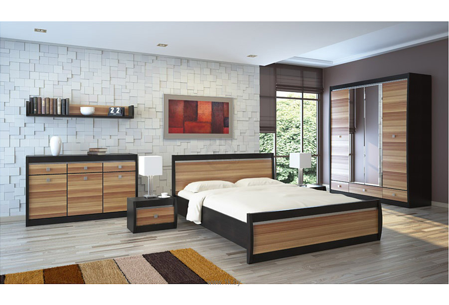 Комплектация: кровать двуспальная, комод. Материал: ЛДСП, МДФ.