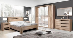 Состав комплекта: комод, шкаф, двуспальная кровать, тумба (2 шт).